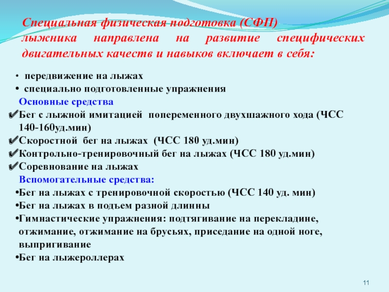 Бег на лыжах с тренировочной скоростью (ЧСС 140 уд. мин)