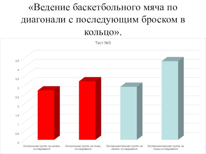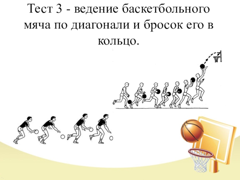 Слайд 8Тест 3 - ведение баскетбольного мяча по диагонали и бросок его