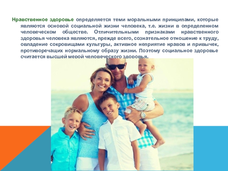 Слайд 7Нравственное здоровье определяется теми моральными принципами, которые являются основой социальной жизни