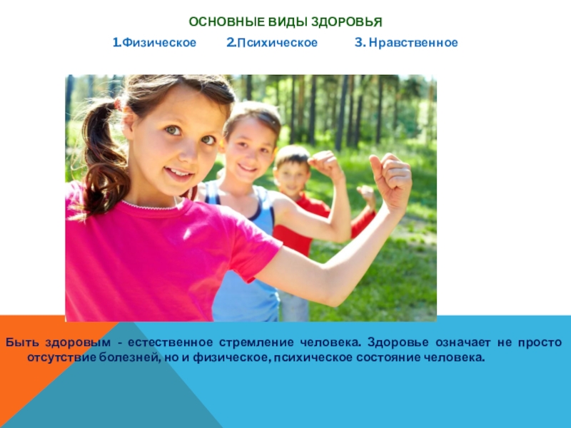 Слайд 3ОСНОВНЫЕ ВИДЫ ЗДОРОВЬЯ
