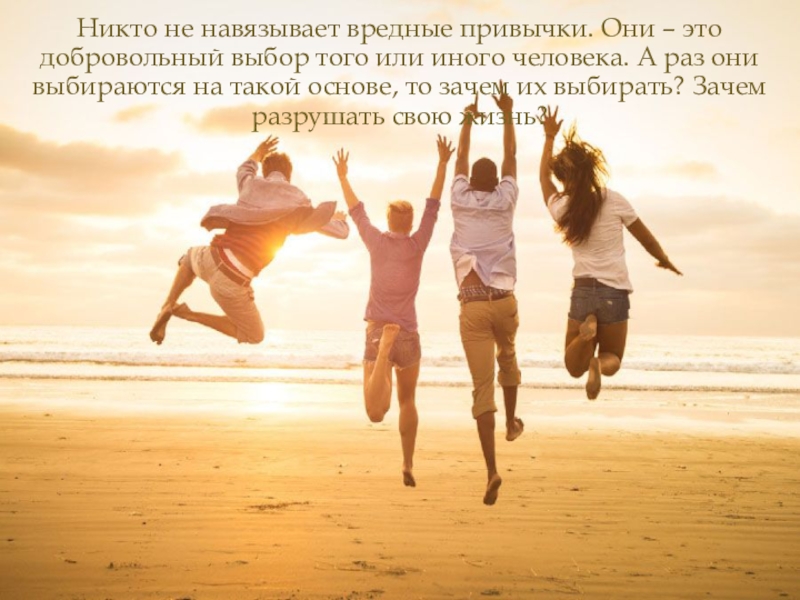 Слайд 13Никто не навязывает вредные привычки. Они – это добровольный выбор того