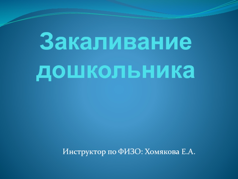 Закаливание дошкольникаИнструктор по ФИЗО: Хомякова Е.А.