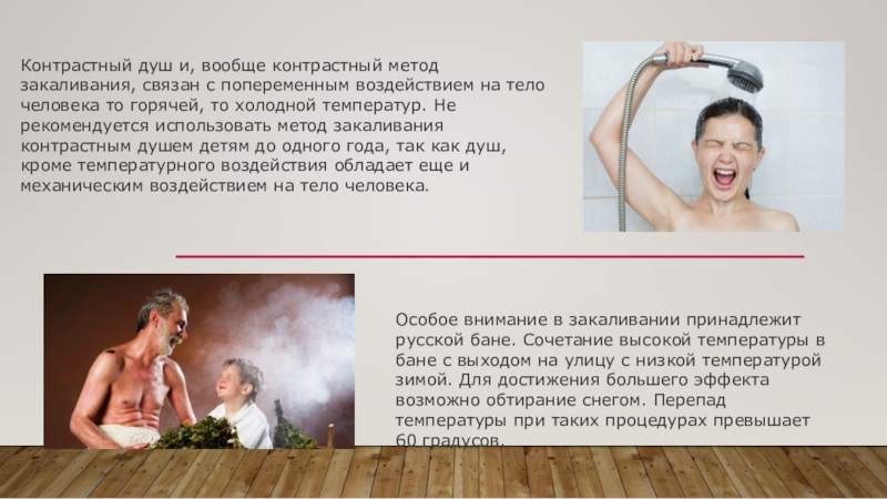 Слайд 8Контрастный душ и, вообще контрастный метод закаливания, связан с попеременным воздействием