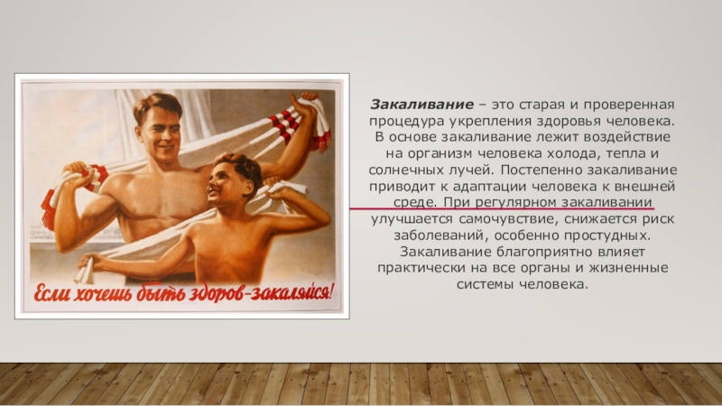 Слайд 2Закаливание – это старая и проверенная процедура укрепления здоровья человека. В