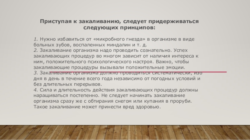 Слайд 9Приступая к закаливанию, следует придерживаться следующих принципов: