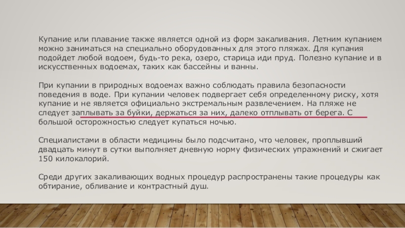 Слайд 6Купание или плавание также является одной из форм закаливания. Летним купанием