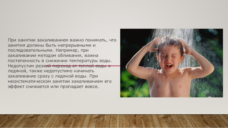 Слайд 3При занятии закаливанием важно понимать, что занятия должны быть непрерывными и