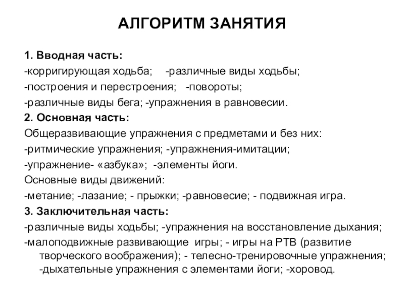 Слайд 7АЛГОРИТМ ЗАНЯТИЯ