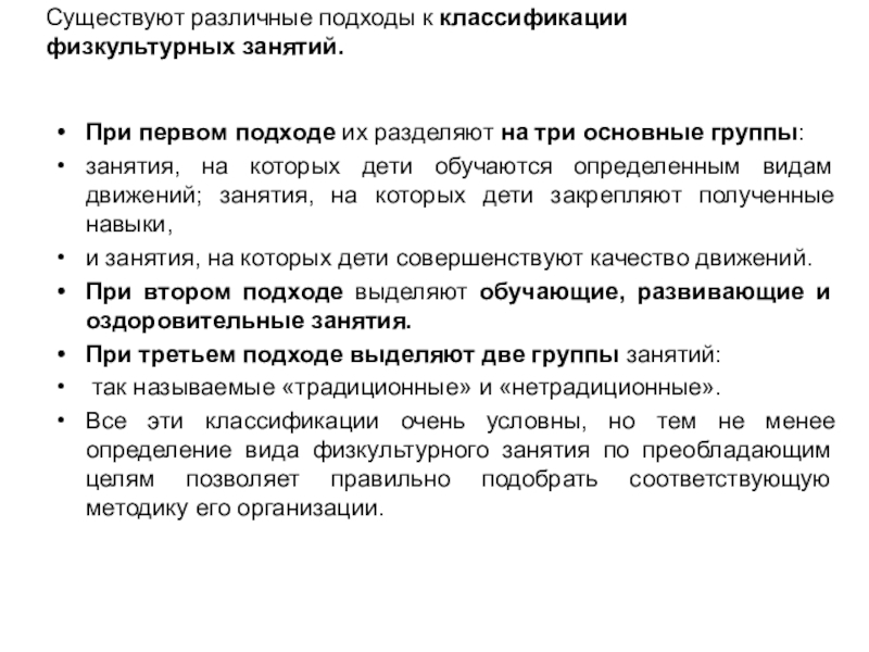 Слайд 11Существуют различные подходы к классификации физкультурных занятий.