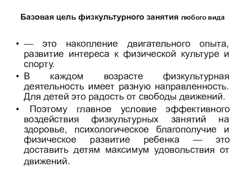 Слайд 6Базовая цель физкультурного занятия любого вида