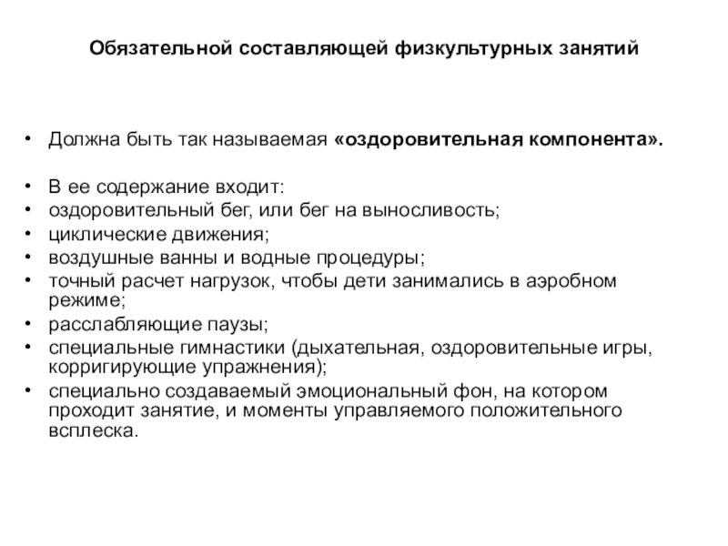 Слайд 8Обязательной составляющей физкультурных занятий