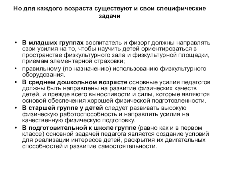 Но для каждого возраста существуют и свои специфические задачи
