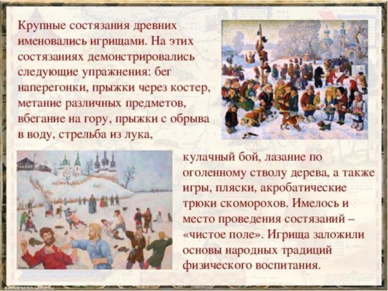 Презентация, доклад на тему Зарождение физической культуры на территории Древней Руси. Развитие физической культуры в России ХVII-XIX вв.