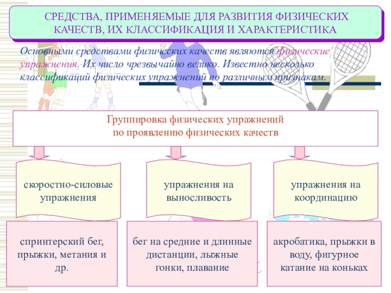 бег на средние и длинные дистанции, лыжные гонки, плавание