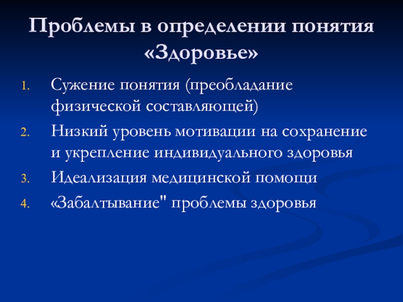 Слайд 3Проблемы в определении понятия «Здоровье»