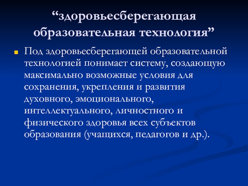 Под здоровьесберегающей образовательной технологией понимает систему, создающую максимально