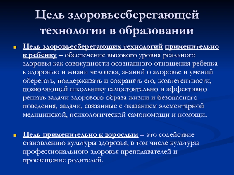 Цель здоровьесберегающих технологий применительно к ребенку –