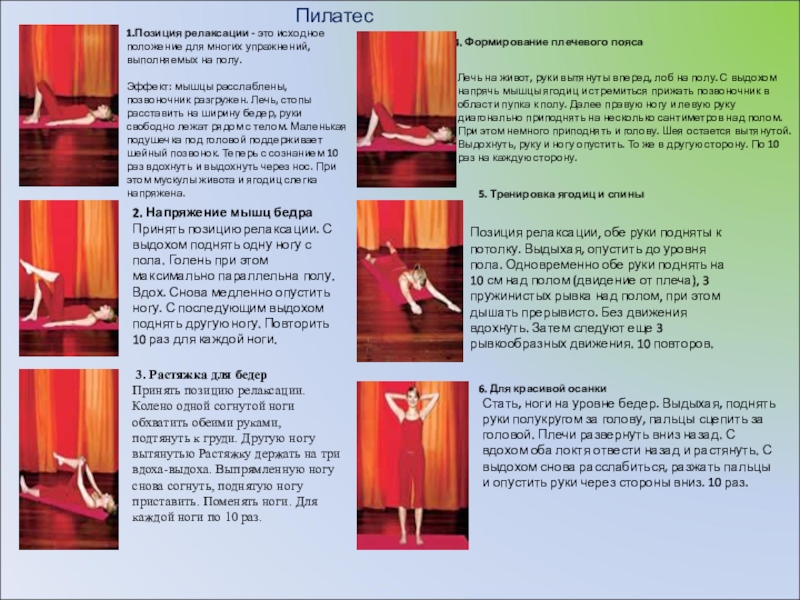 Лечь на живот, руки вытянуты вперед, лоб на полу. С выдохом напрячь мышцы ягодиц и стремиться прижать позвоночник в области пупка к полу. Далее правую ногу и левую руку диагонально приподнять на несколько сантиметров над полом. При этом немного приподнять и голову. Шея остается вытянутой. Выдохнуть, руку и ногу опустить. То же в другую сторону. По 10 раз на каждую сторону.
