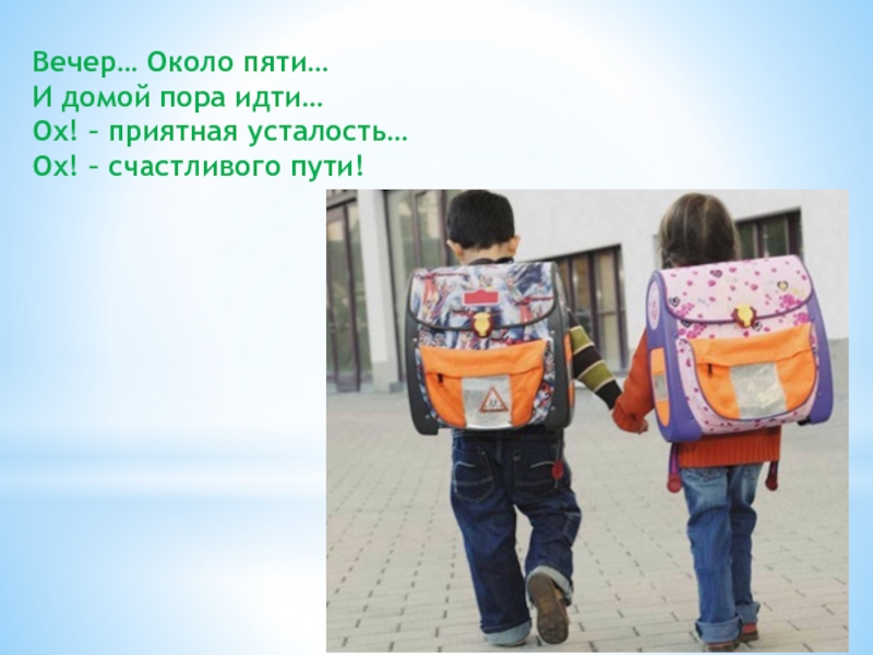Вечер… Около пяти…И домой пора идти…Ох! – приятная усталость…Ох! – счастливого пути!