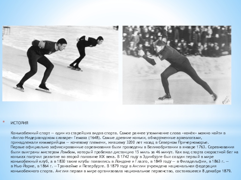 Конькобежный спорт — один из старейших видов спорта. Самое раннее упоминание слова
