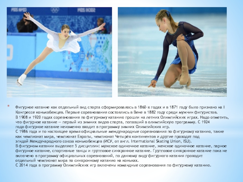 Слайд 40Фигурное катание как отдельный вид спорта сформировалось в 1860-х годах и