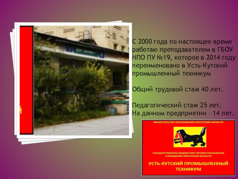Слайд 6С 2000 года по настоящее время работаю преподавателем в ГБОУ НПО