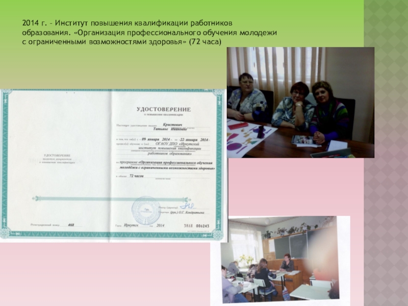 Слайд 102014 г. – Институт повышения квалификации работников образования. «Организация профессионального обучения