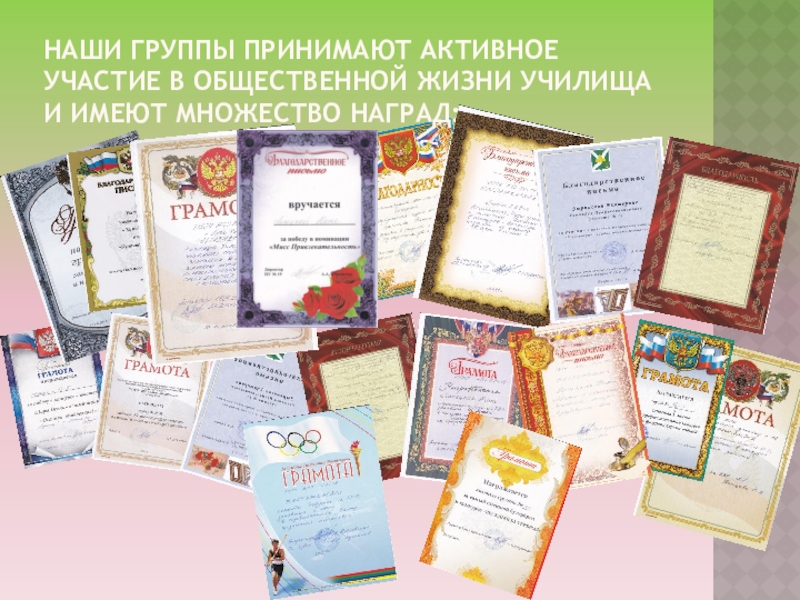 Слайд 35Наши группы принимают активное участие в общественной жизни училища и имеют