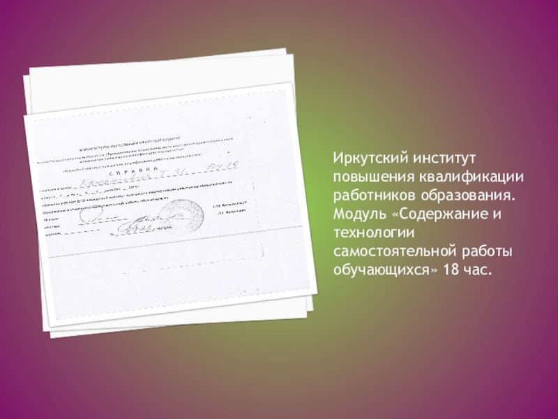 Слайд 11Иркутский институт повышения квалификации работников образования. Модуль «Содержание и технологии самостоятельной