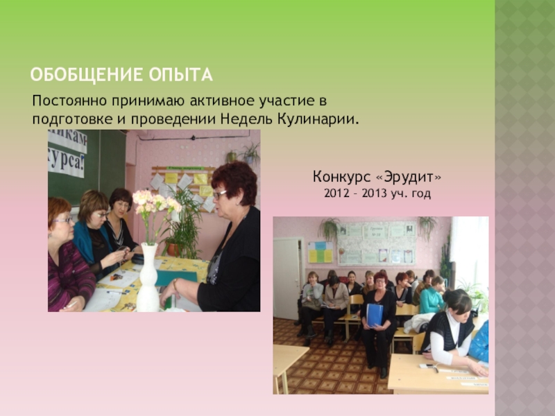 Постоянно принимаю активное участие в подготовке и проведении Недель Кулинарии.