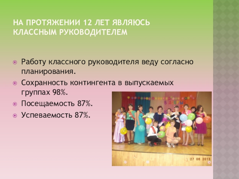Слайд 33На протяжении 12 лет являюсь классным руководителем