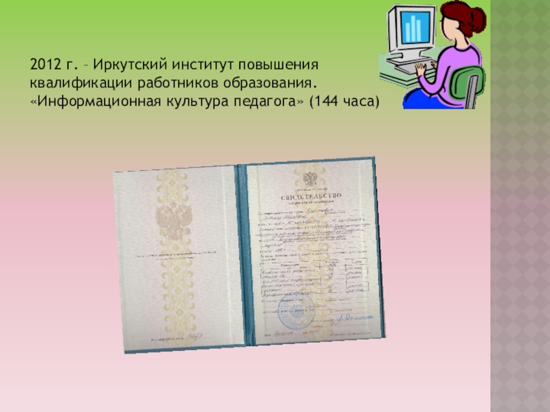 Слайд 82012 г. – Иркутский институт повышения квалификации работников образования. «Информационная культура