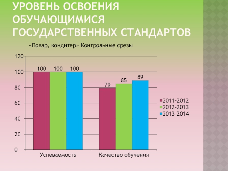 Слайд 17Уровень освоения обучающимися государственных стандартов