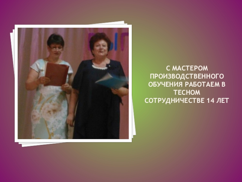Слайд 34С мастером производственного обучения работаем в тесном сотрудничестве 14 лет