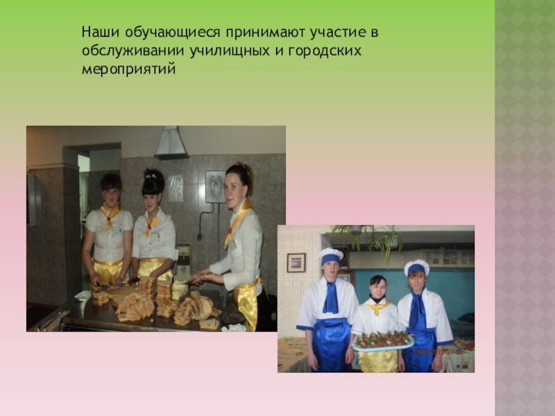 Слайд 36Наши обучающиеся принимают участие в обслуживании училищных и городских мероприятий