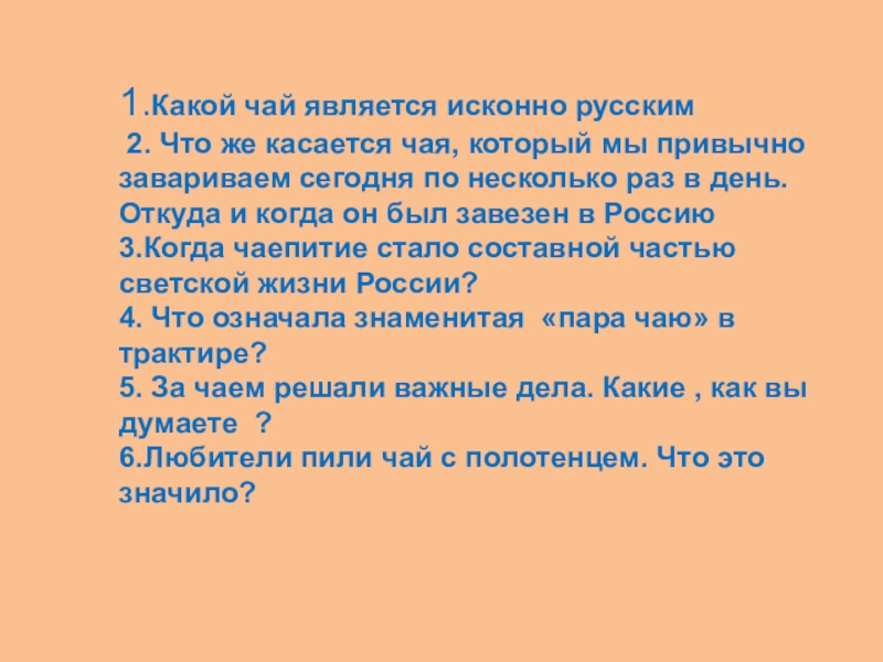5. За чаем решали важные дела. Какие , как вы думаете ?