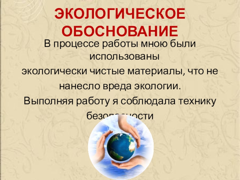 Слайд 11ЭКОЛОГИЧЕСКОЕ ОБОСНОВАНИЕ