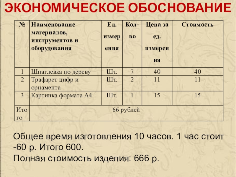 Слайд 10ЭКОНОМИЧЕСКОЕ ОБОСНОВАНИЕ