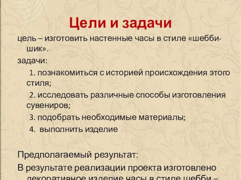 цель – изготовить настенные часы в стиле «шебби-шик».