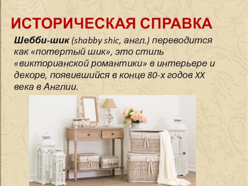 Шебби-шик (shabby shic, англ.) переводится как «потертый шик», это стиль