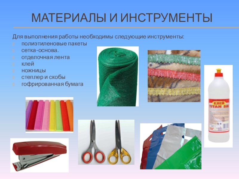 Изделие украшено цветоч- ками и бантиками. Для соеди- нения деталей использовали степлер.