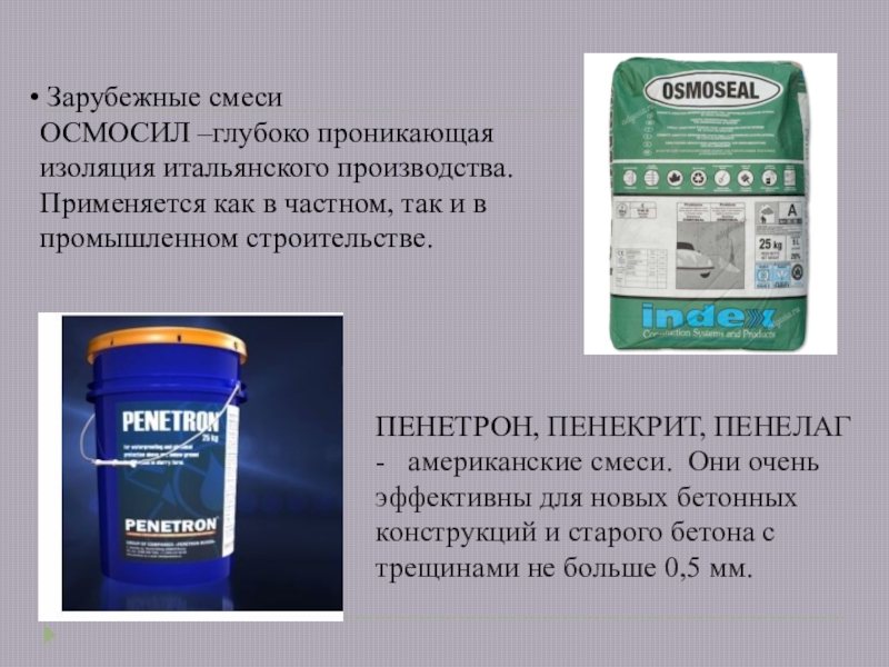 ОСМОСИЛ –глубоко проникающая изоляция итальянского производства. Применяется как в частном, так и в промышленном строительстве.