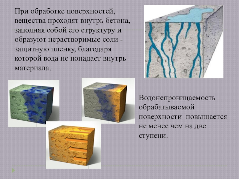 Водонепроницаемость обрабатываемой поверхности повышается не менее чем на две ступени.