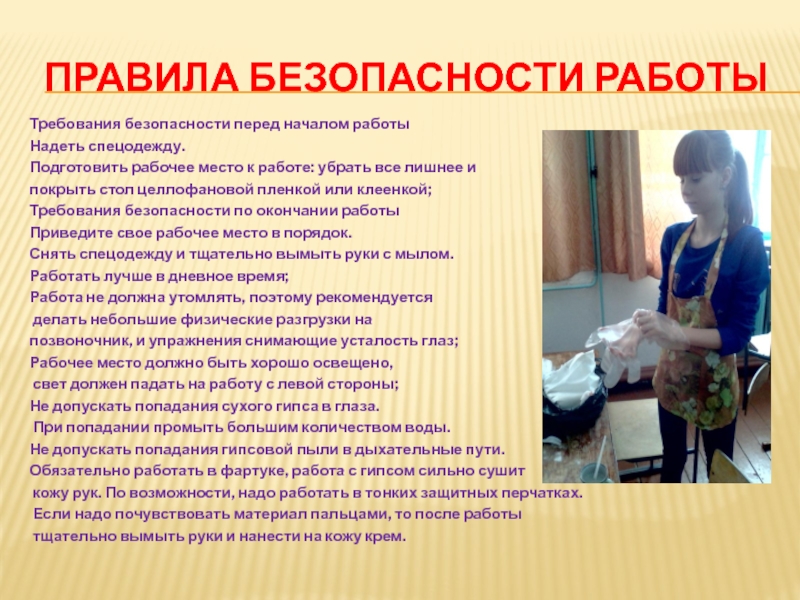 Обязательно работать в фартуке, работа с гипсом сильно сушит
