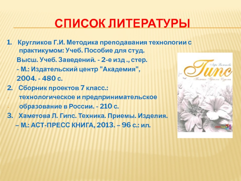 1. Кругликов Г.И. Методика преподавания технологии с практикумом: Учеб.