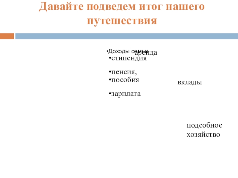 Давайте подведем итог нашего путешествия  арендавкладыподсобноехозяйство