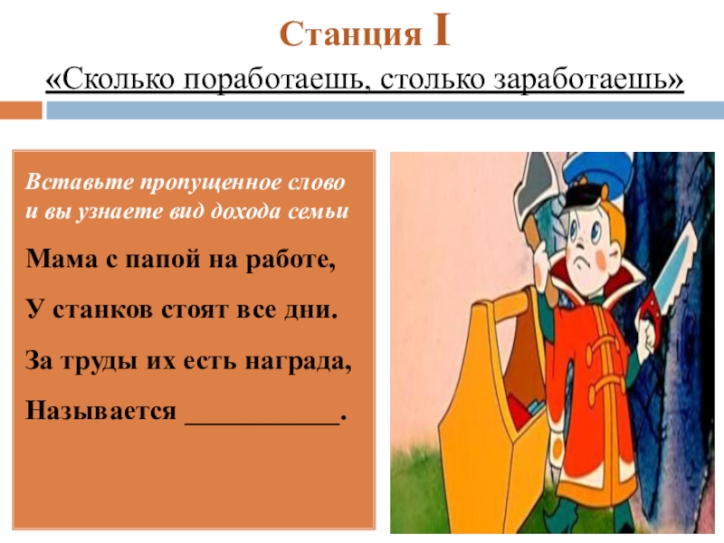Слайд 3 Станция I «Сколько поработаешь, столько заработаешь»