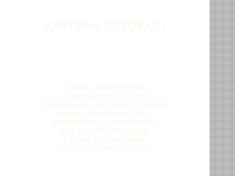 Это сайт презентаций, где можно хранить и обмениваться своими презентациями, докладами, проектами, шаблонами в формате PowerPoint с другими пользователями. Мы помогаем школьникам, студентам, учителям, преподавателям хранить и обмениваться учебными материалами.