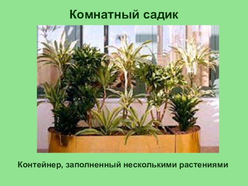 Комнатный садик Контейнер, заполненный несколькими растениями