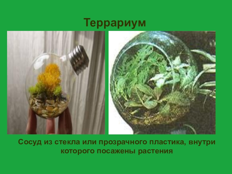 Террариум Сосуд из стекла или прозрачного пластика, внутри которого посажены растения